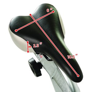 The saddle is slim and long in shape with dimensions of 10.5 inches long by 6 inches wide by 2.5 inches tall, and it is considerably padded to provide comfort to the butt. But just as many spin bikes’ seats, they are rarely comfortable without using a gel seat cover or better still, replacing the entire saddle with one that is better.