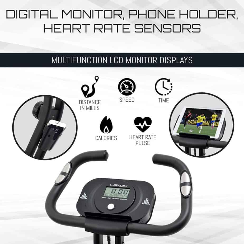 - It integrates an LCD monitor that tracks your workout progress by displaying stats such as Time, Distance, Speed, Calories Burned, and Heart Rate